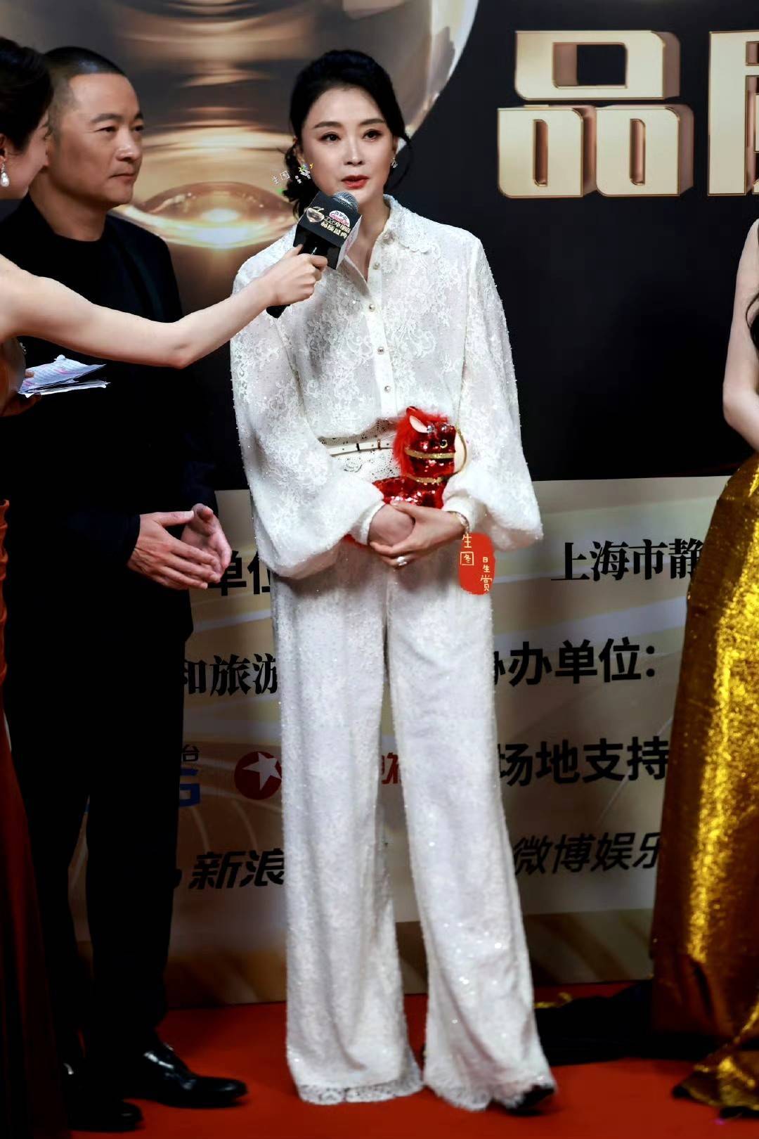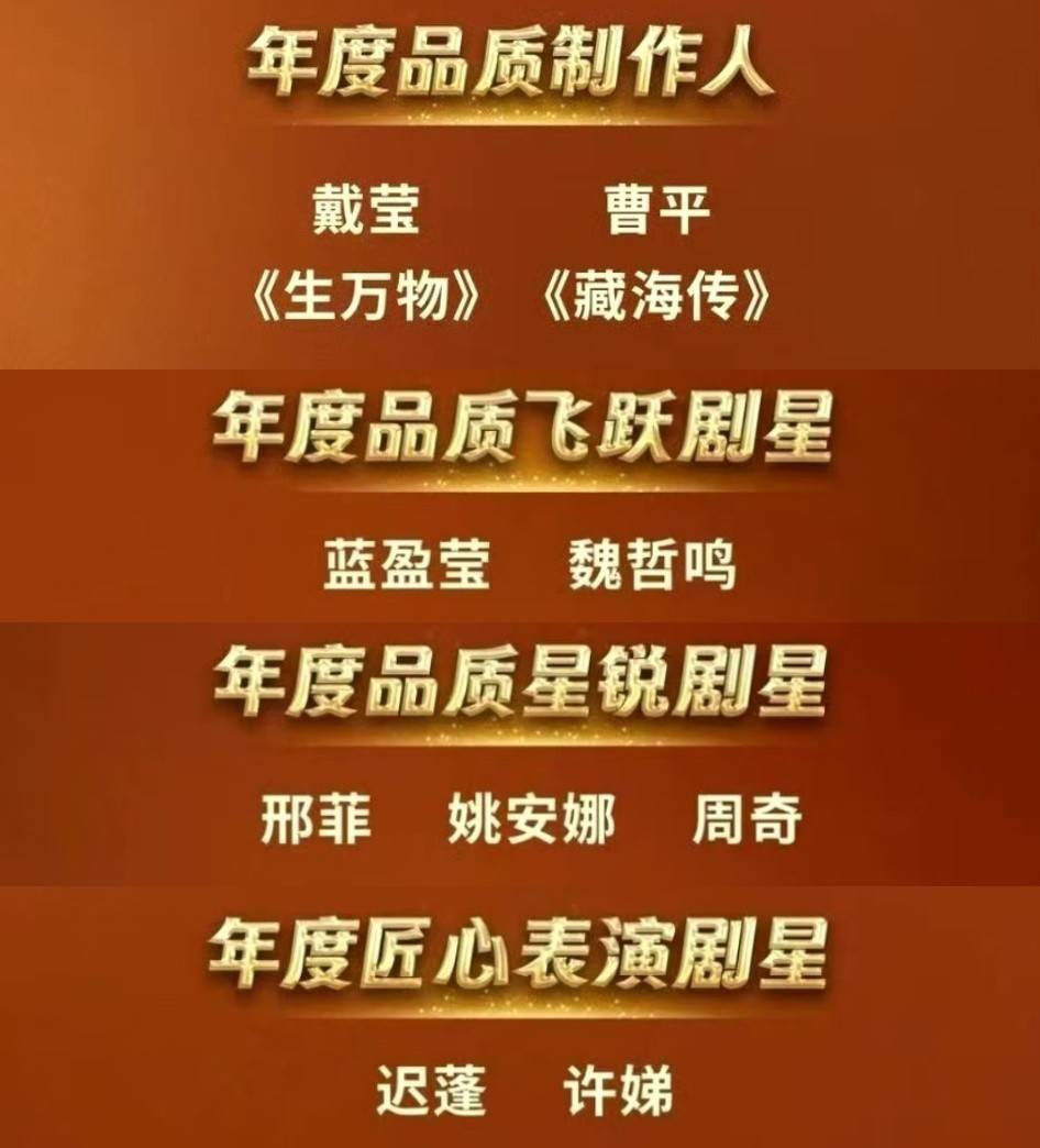 就算是莫得到场的演员,比如秦海璐,也得回了年度品性荣耀剧星,主持方一个都没落下。
