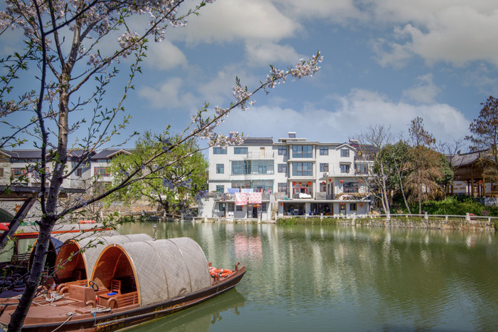 春天不是钱家渡的舒畅区,而是它的统治区!花朵将悠悠水乡点缀得倾城倾国。摇橹船拂花穿行,春水踯躅开花影,江南的春天王人藏在桨声里。
