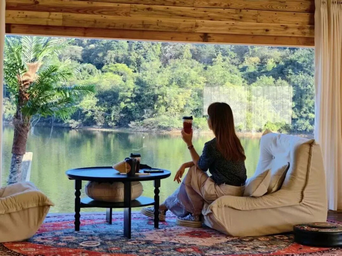 这里背靠龙山,毗邻龙山湖,湖光潋滟,是垂手而得的诗与远处。点一杯咖啡慢悠悠等着蓝调时候,把夕阳下的绝好意思晏湖留在心里。