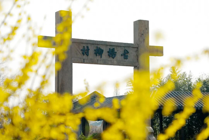 杨柳村的油菜花开得正值,黄灿灿地铺满田埂,与白墙青瓦、高宅深院相映生辉。背倚绿树,前临绿水,垂柳拂岸,统共村庄静卧在春日的柔光里。