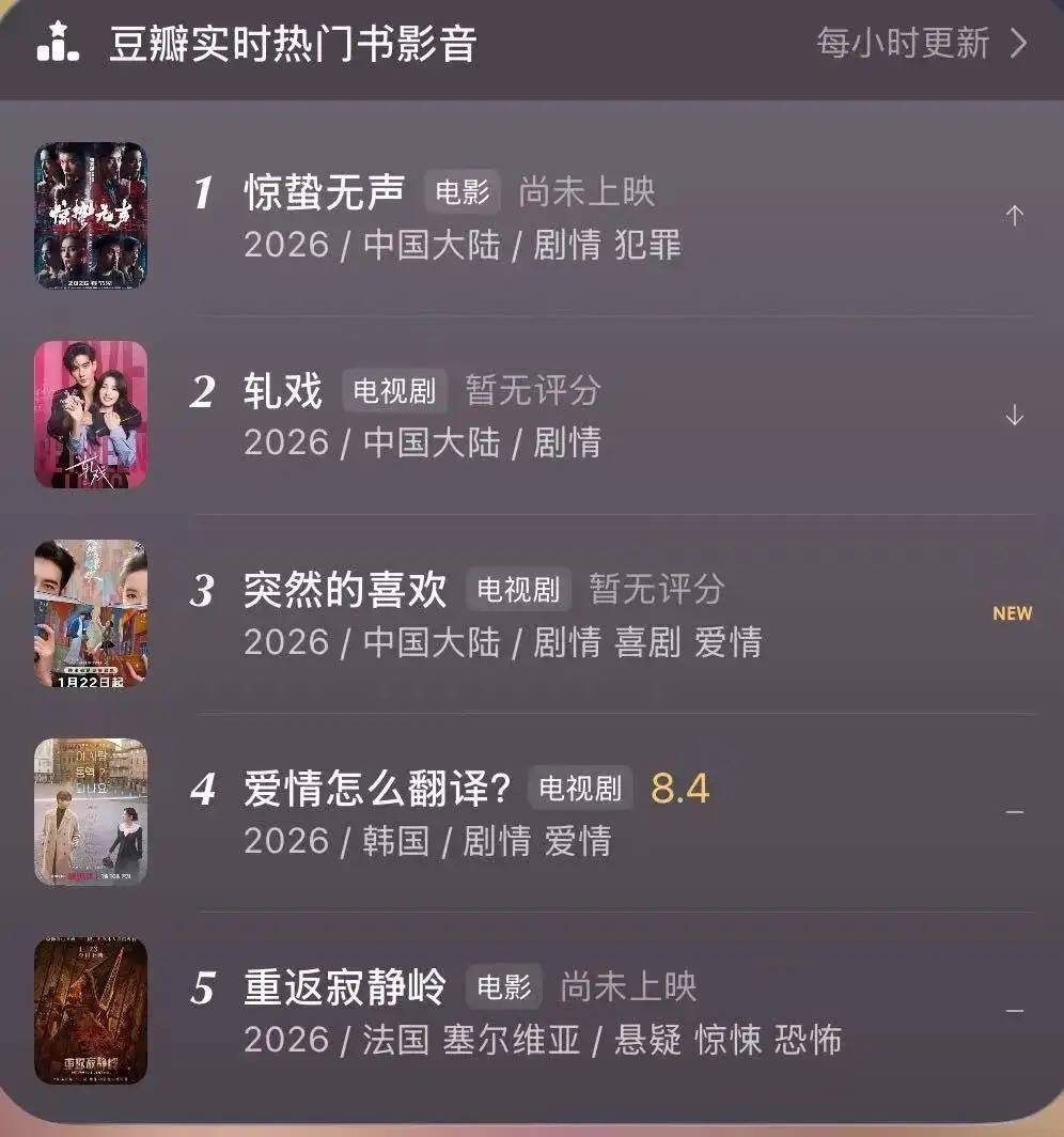 动作一部韩剧,能在这样多热点国产影视作品中,挤进豆瓣及时书影音的前五名,也足以施展本剧的热度了。
