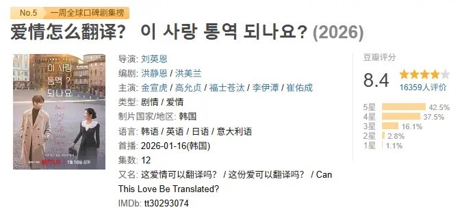 没错,这等于前几天刚刚开播的韩剧《爱情奈何翻译?》