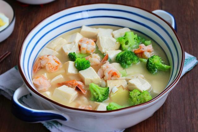 西兰花虾仁豆腐汤